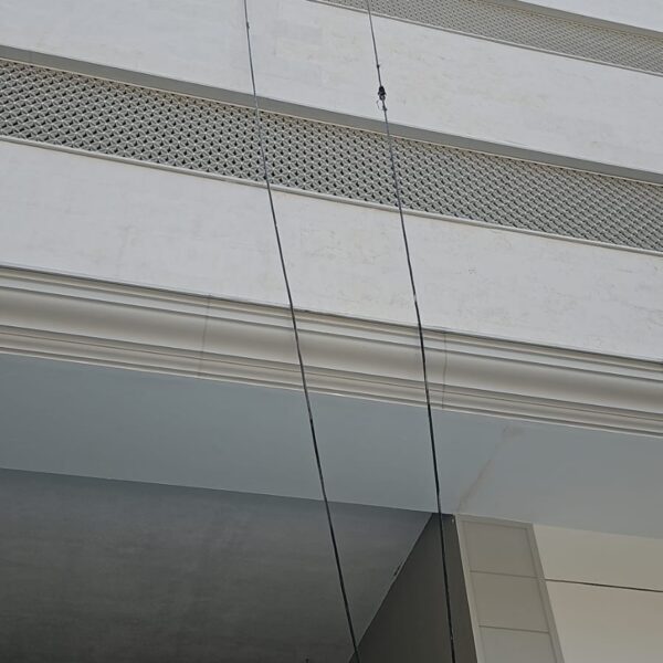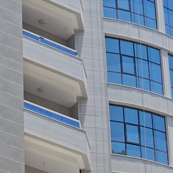 تركيب السيراميك بنظام التعليق الميكانيكي، وهو النظام الأنسب للأبراج لضمان الأمان وعدم تساقط القطع بفعل التمدد الحراري أو الاهتزازات.