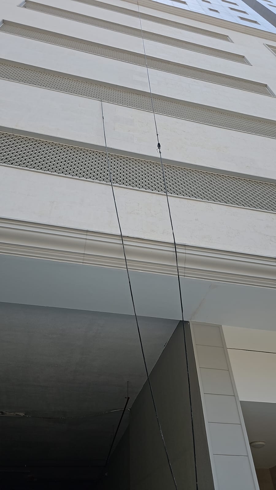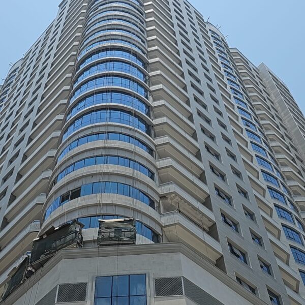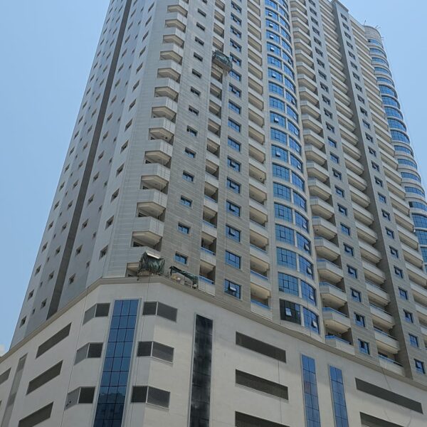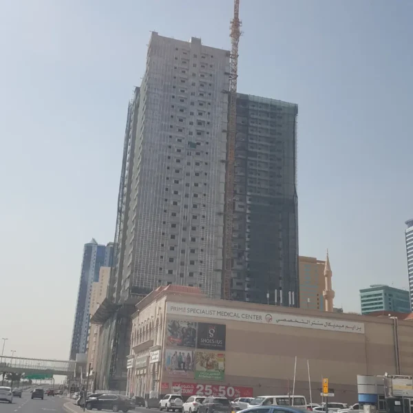 يعتبر "برج رمال الشارقة" أحد المعالم العمرانية الشاهقة التي نفخر بتنفيذها في منطقة المجاز 1 الحيوية. يتألف المشروع من 34 طابقاً (G+6P+28)، مما يضع تحديات هندسية خاصة تتطلب دقة متناهية في حسابات الأحمال ومقاومة الرياح للواجهات الخارجية. نجمع في هذا المشروع بين صلابة التثبيت الميكانيكي للسيراميك وبين جمالية التصميم المعماري المتمثل في الواجهات الدائرية من مادة الـ (GRC).