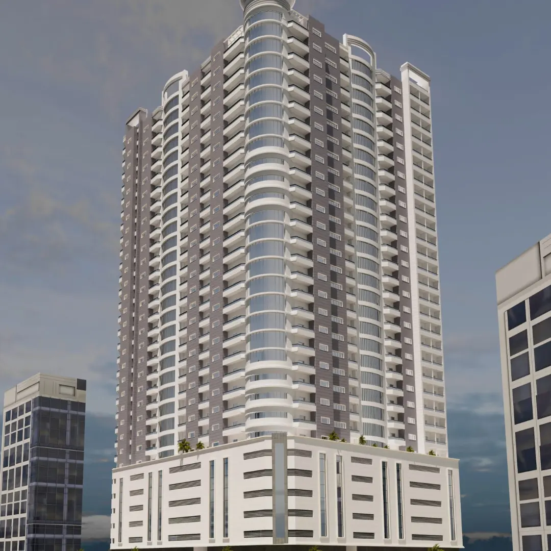 نوع المبنى: برج سكني شاهق (أرضي + 6 طوابق مواقف + 28 طابق متكرر).