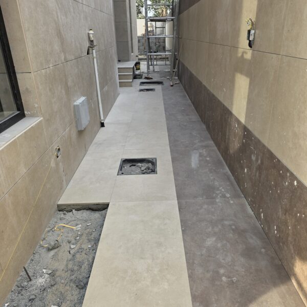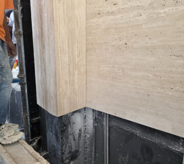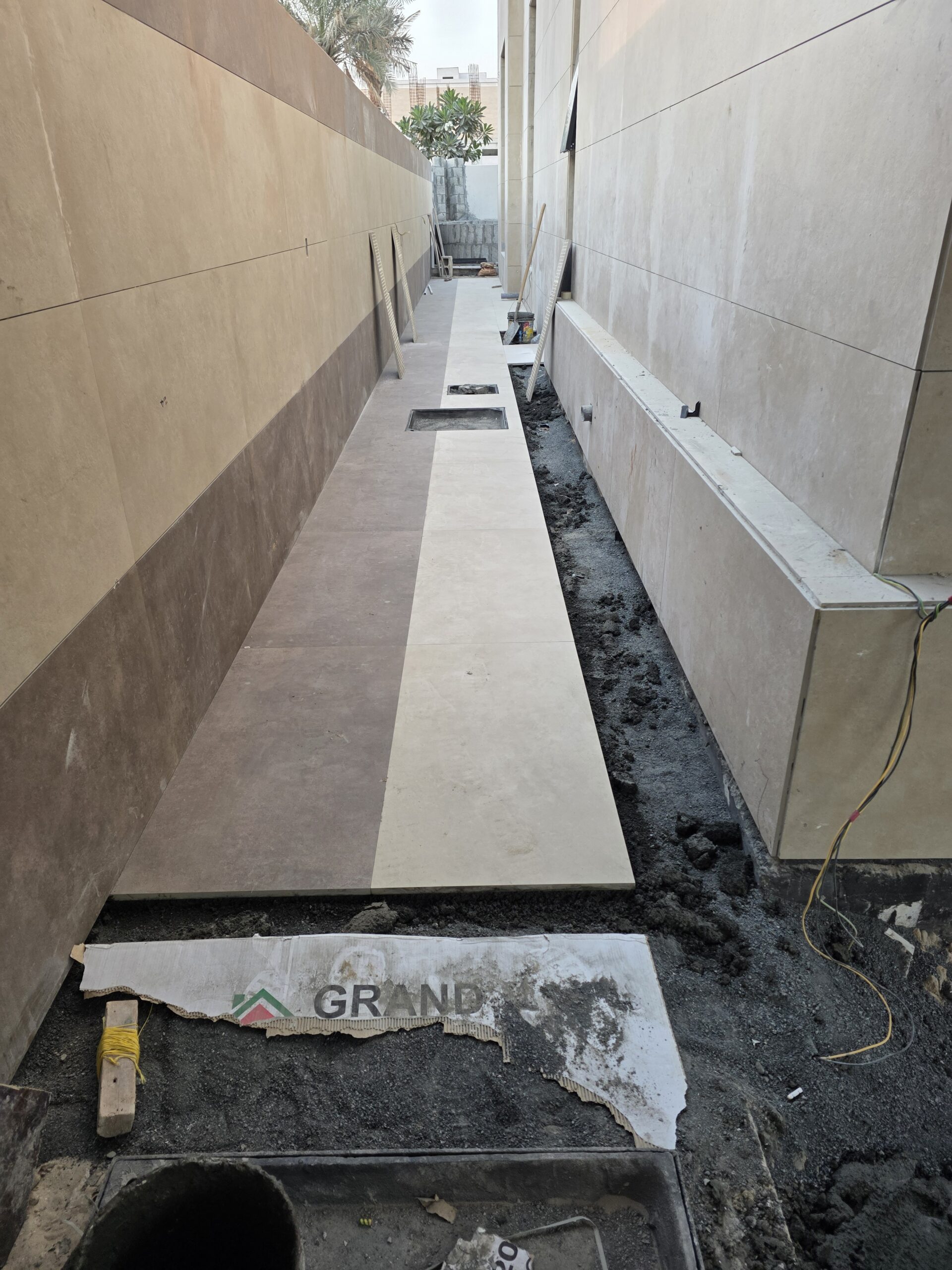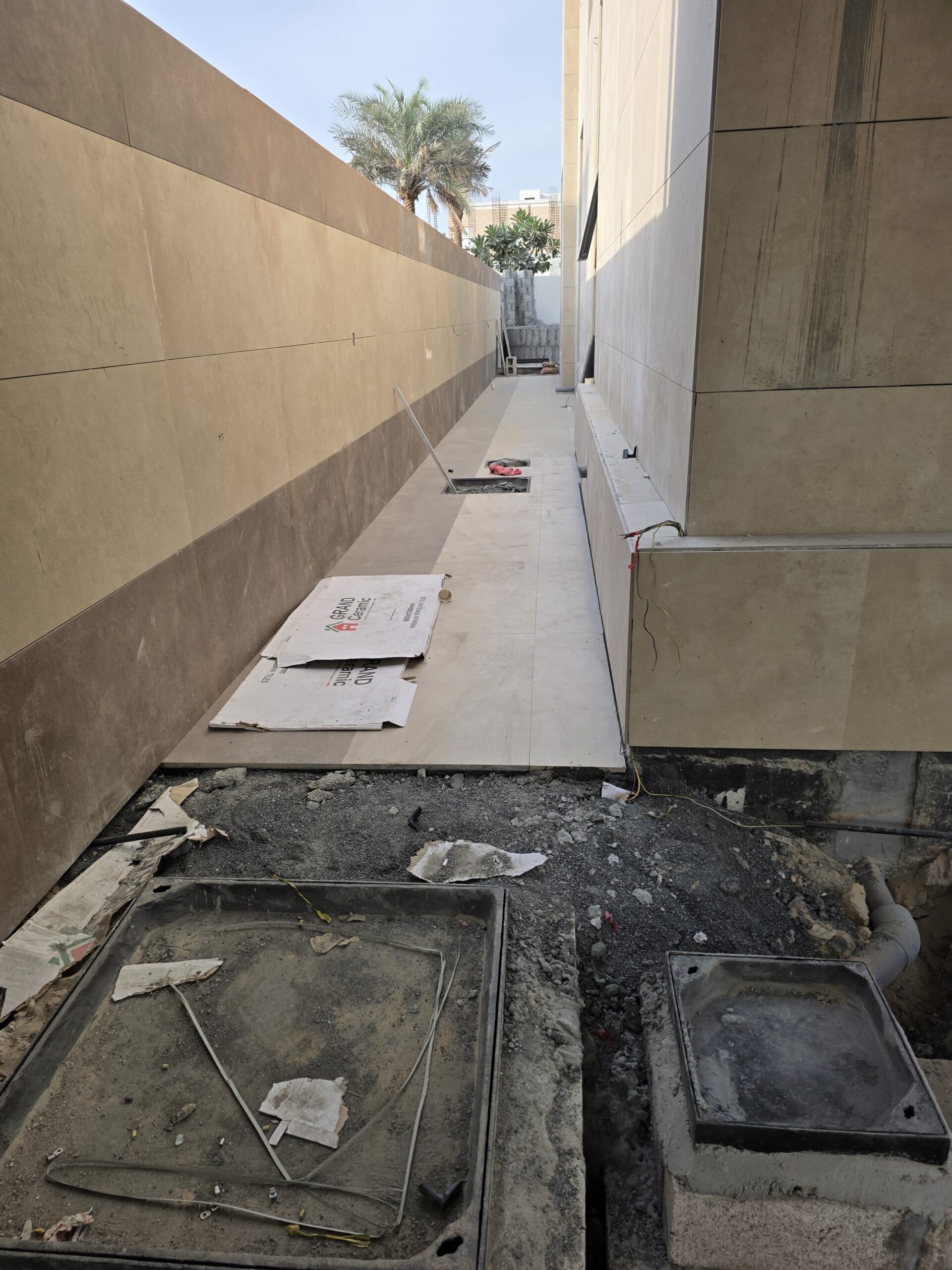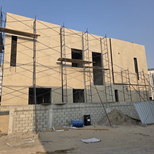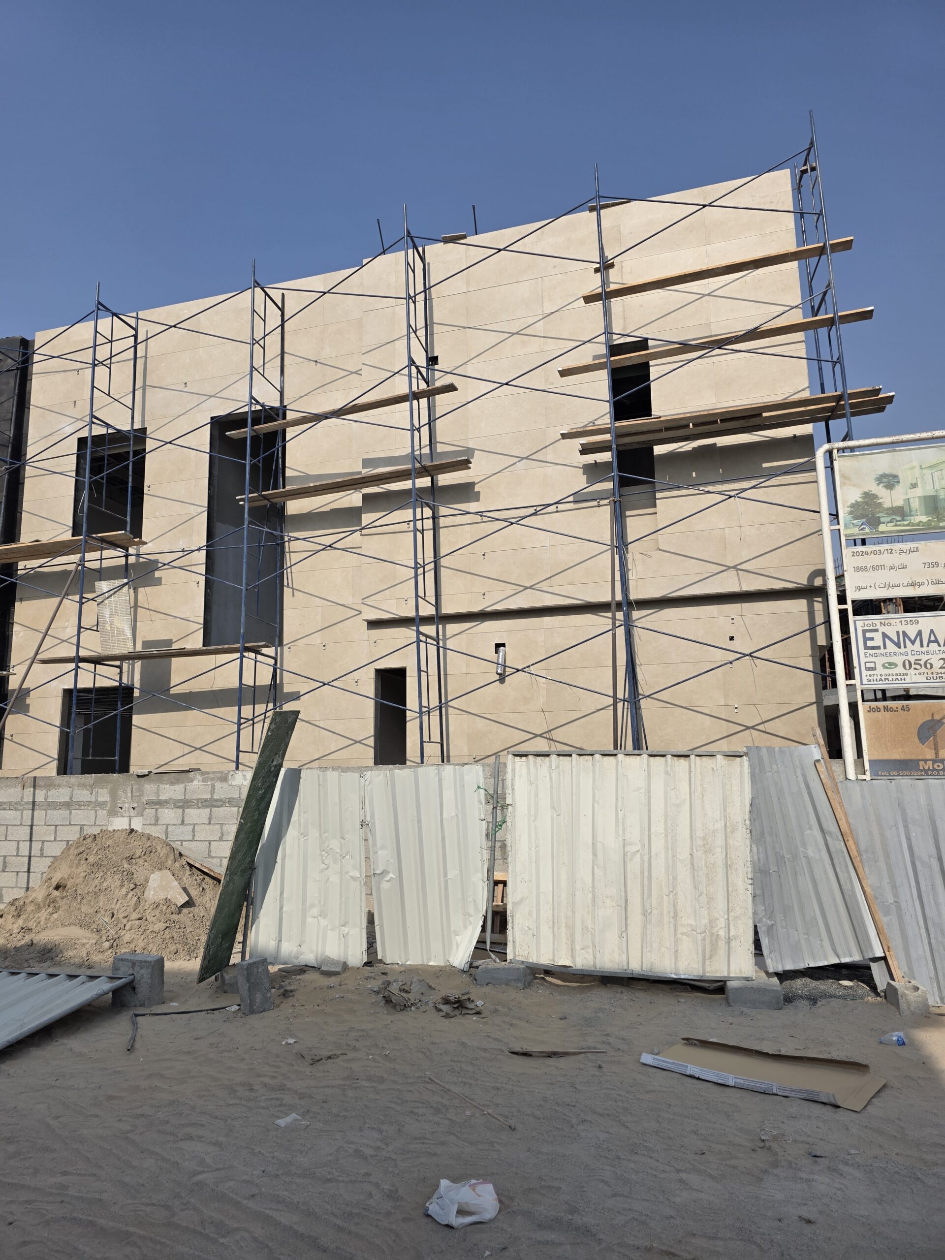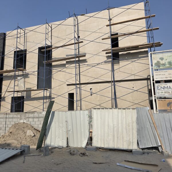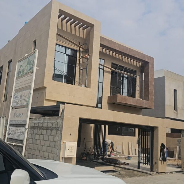 • توريد وتركيب الحجر الخارجي للواجهة، مما أضفى طابعاً من الفخامة والمتانة على الهيكل الخارجي للفيلا.