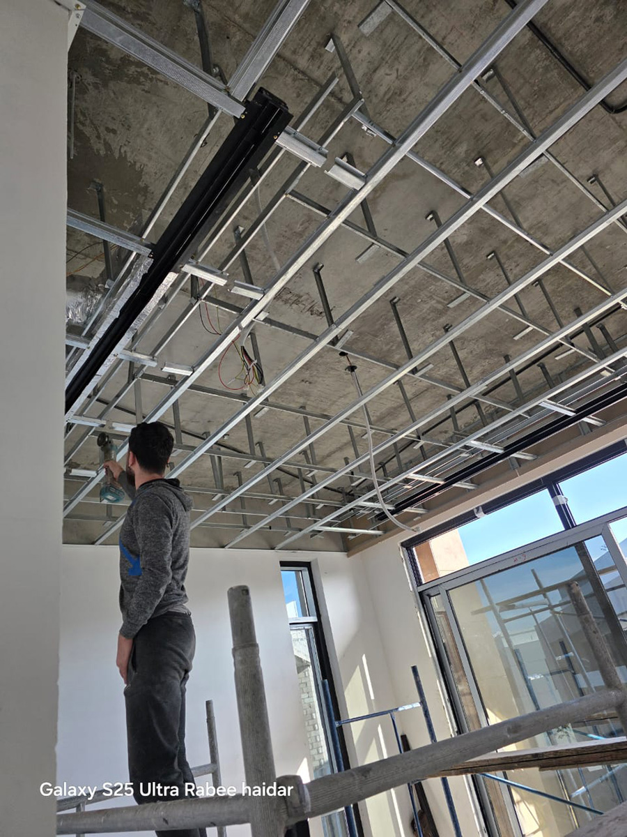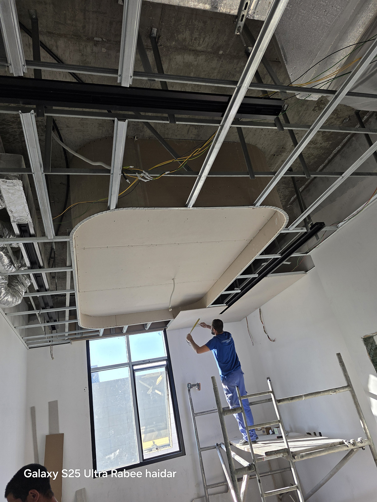 • الجبس بورد: تنفيذ ديكورات أسقف وجدران عصرية باستخدام ألواح الجبس بورد بتصاميم مميزة ودقة عالية في الـ (Leveling).
