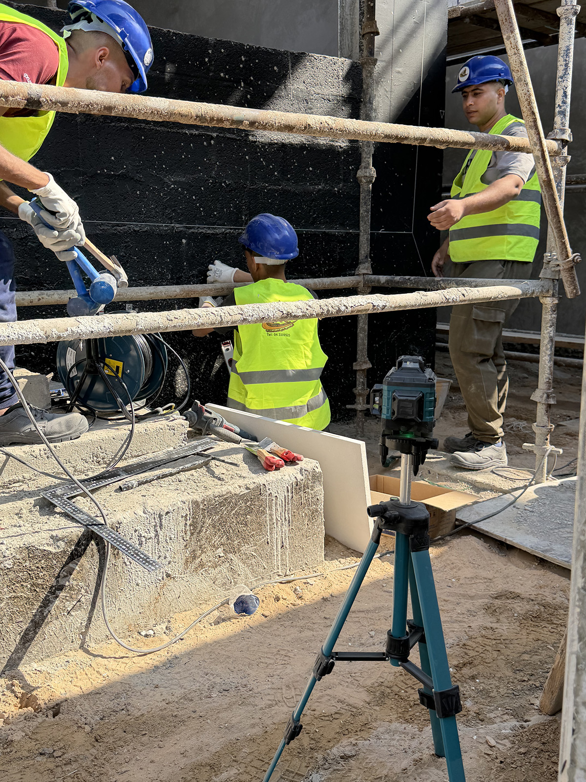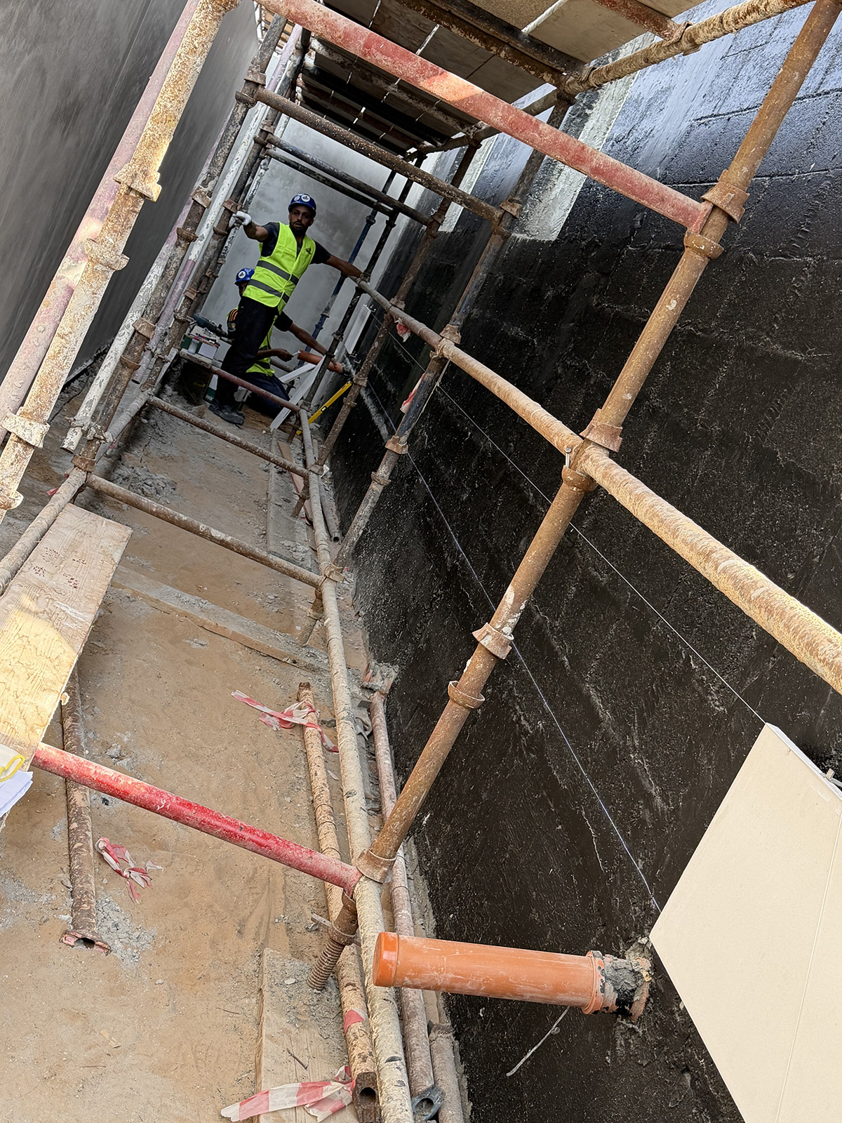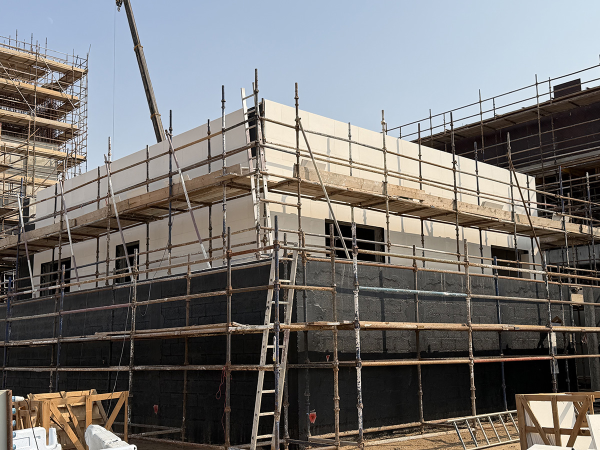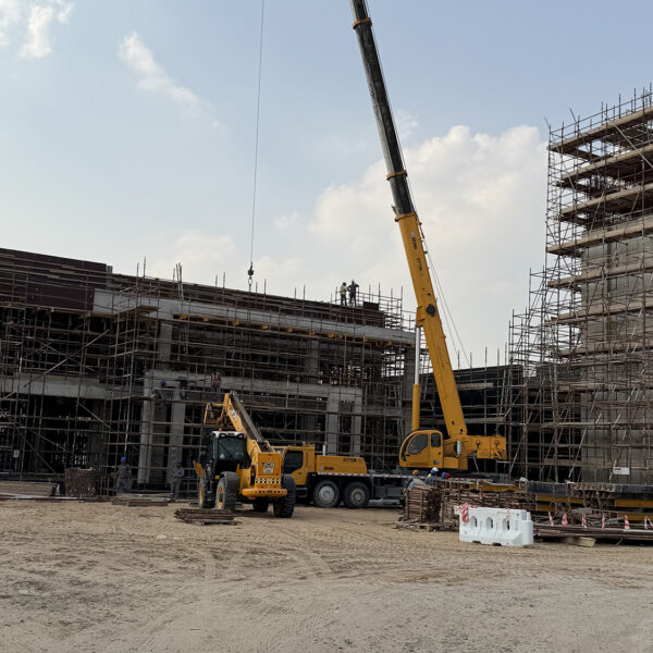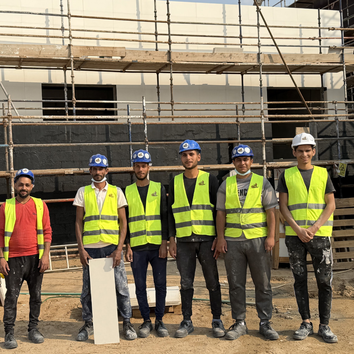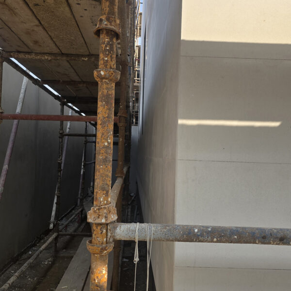 إدارة الموقع: العمل على 5 واجهات لمباني منفصلة في آن واحد، مما يتطلب تنسيقاً لوجستياً عالياً لضمان سرعة الإنجاز وتسليم الأعمال للمقاول الرئيسي (JEET) وفق الجدول الزمني المحدد.