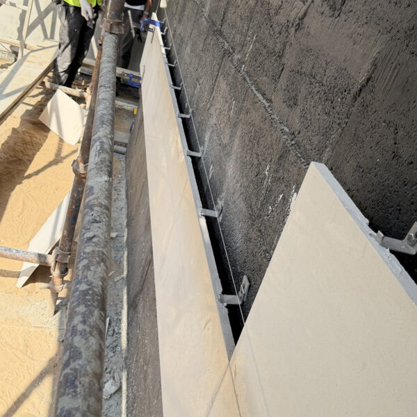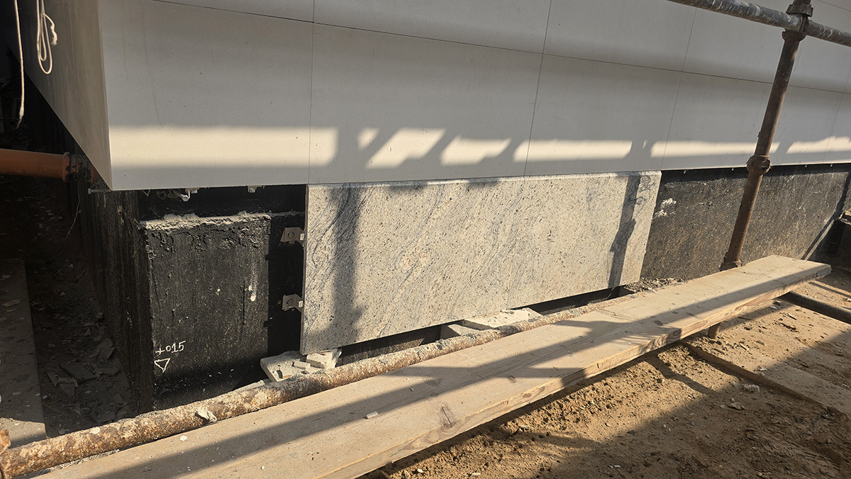 تتولى الشركة مسؤولية إكساء الواجهات الخارجية لخمسة مباني منفصلة داخل المجمع بالحجر الطبيعي، بمساحة إجمالية ضخمة تصل إلى 2,500 متر مربع. يركز فريقنا الفني على: